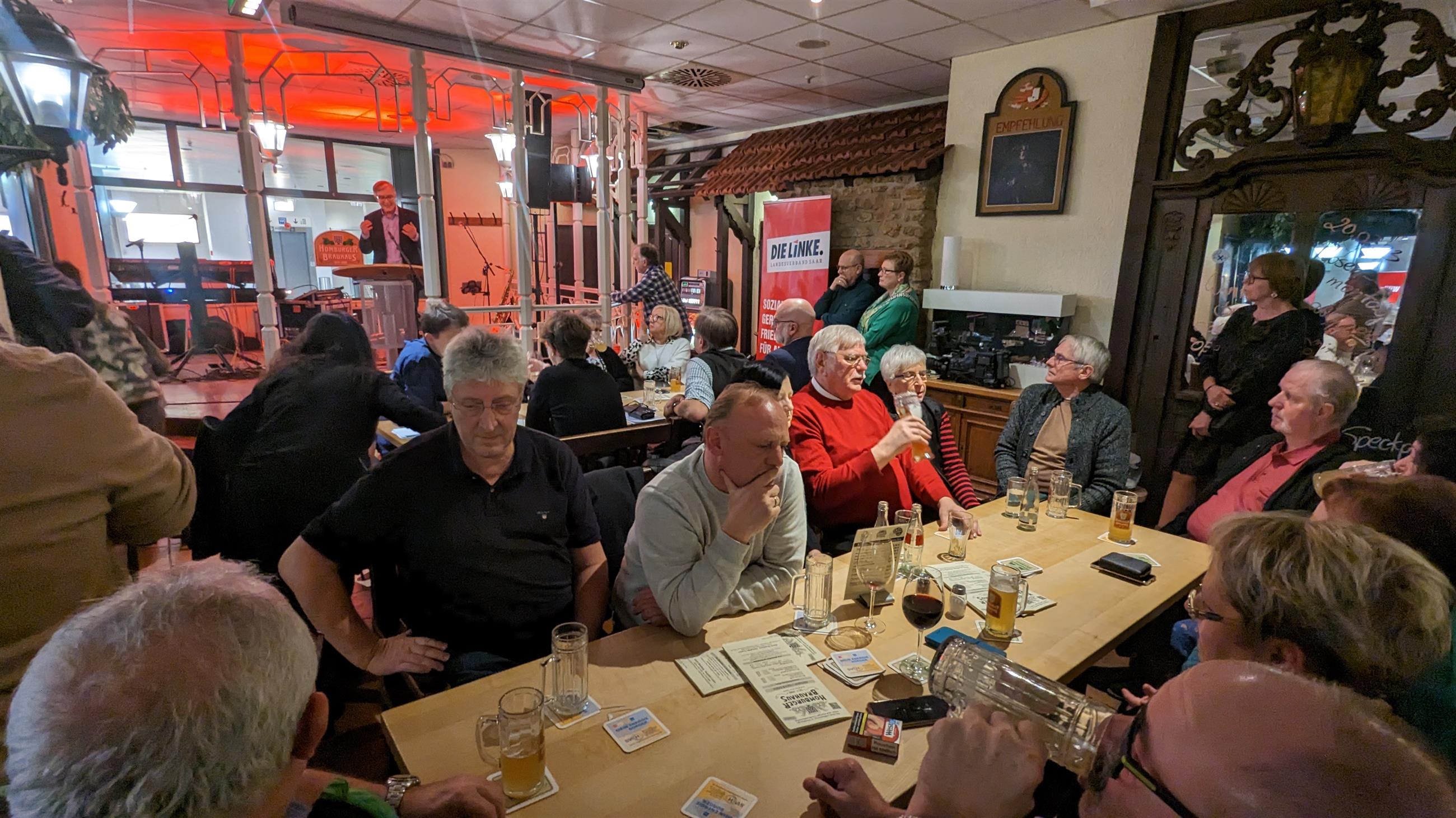 Was für grandioser Abend! Auf dem Neujahrsempfang am 2.2.2023, im Brauhaus Homburg, erlebten die mehr als 250 Anwesenden kämpferische Reden unserer Landesvorsitzenden Barbara Spaniol und dem Vorsitzenden der Bundestagsfraktion Dietmar Bartsch. Der jeweilige Applaus sprach Bände.