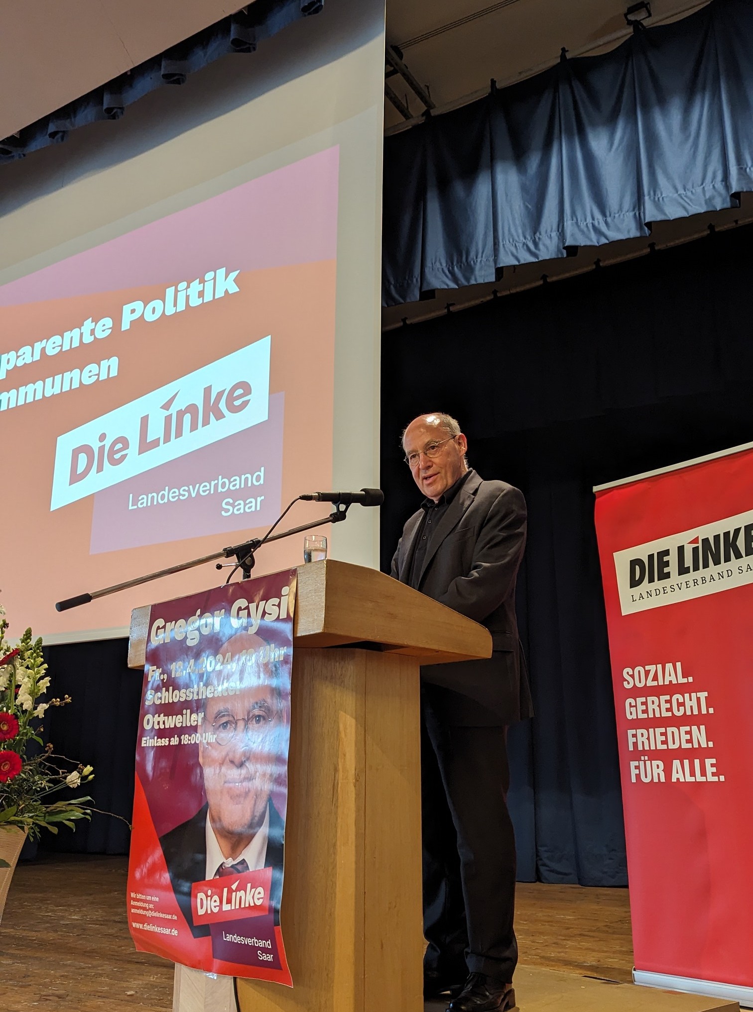 Veranstaltung des Landesverbandes mit Gregor Gysi am 12.4.2024 im Schlosstheater Ottweiler ein voller Erfolg! Nach dem Sektempfang erlebten über 150 Teilnehmer eine selbstredend sehr kommunalpolitisch geprägte Rede der Landesvorsitzenden Barbara Spaniol. Und im Anschluss eine fesselnde Rede von Gregor Gysi, der Bundes- und Europapolitik auf seine unvergleichlich eigene Art darstellte. Der tosende Applaus war ihm sicher. Im Rahmenprogramm gab es Akkordeonmusik und die Personenschlange am Fotokiosk mit Gr... » weiterlesen