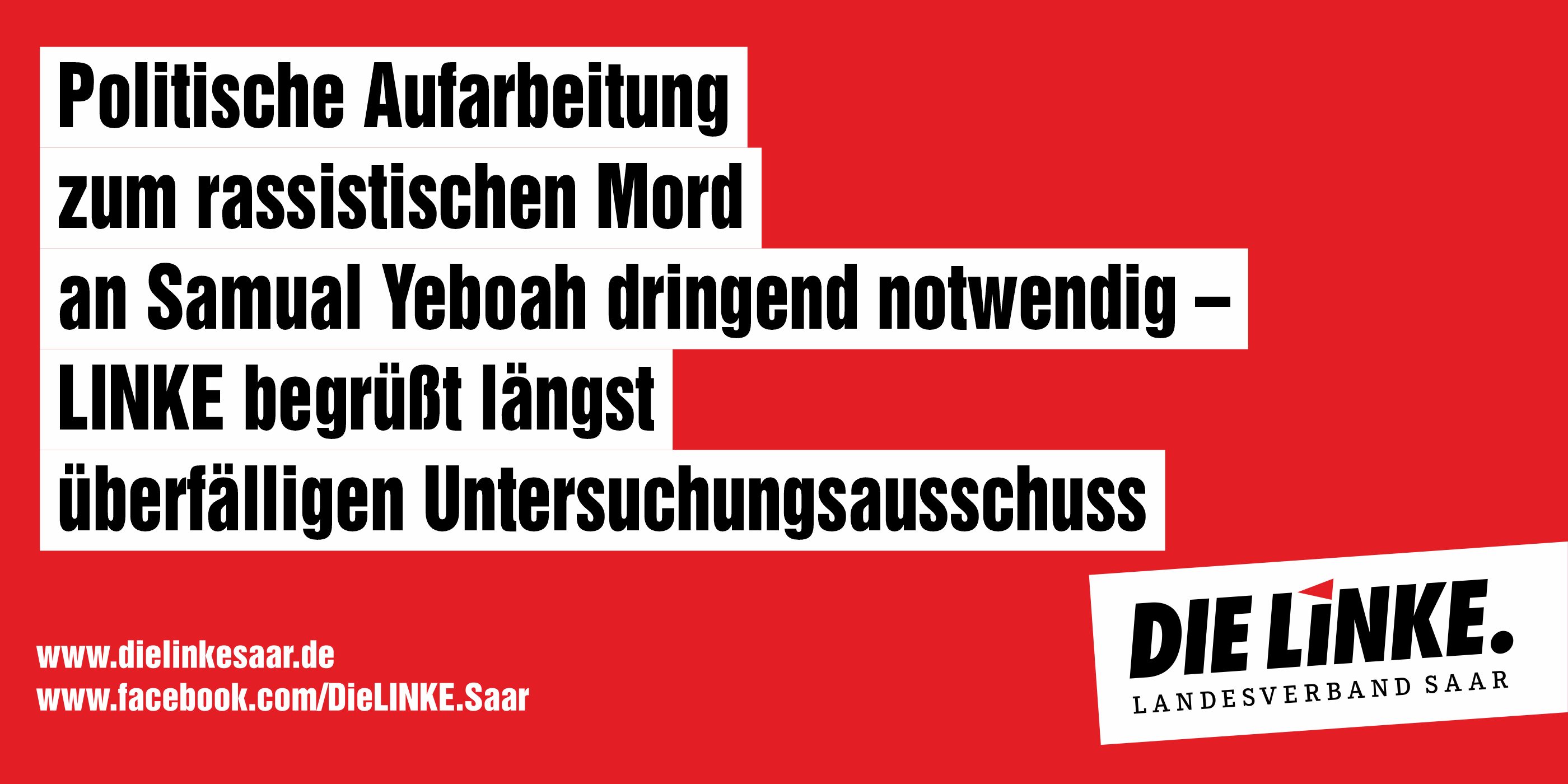 DIE LINKE Saar: politische Aufarbeitung zum rassistischen Mord an Samual Yeboah dringend notwendig – LINKE begrüßt längst überfälligen Untersuchungsausschuss