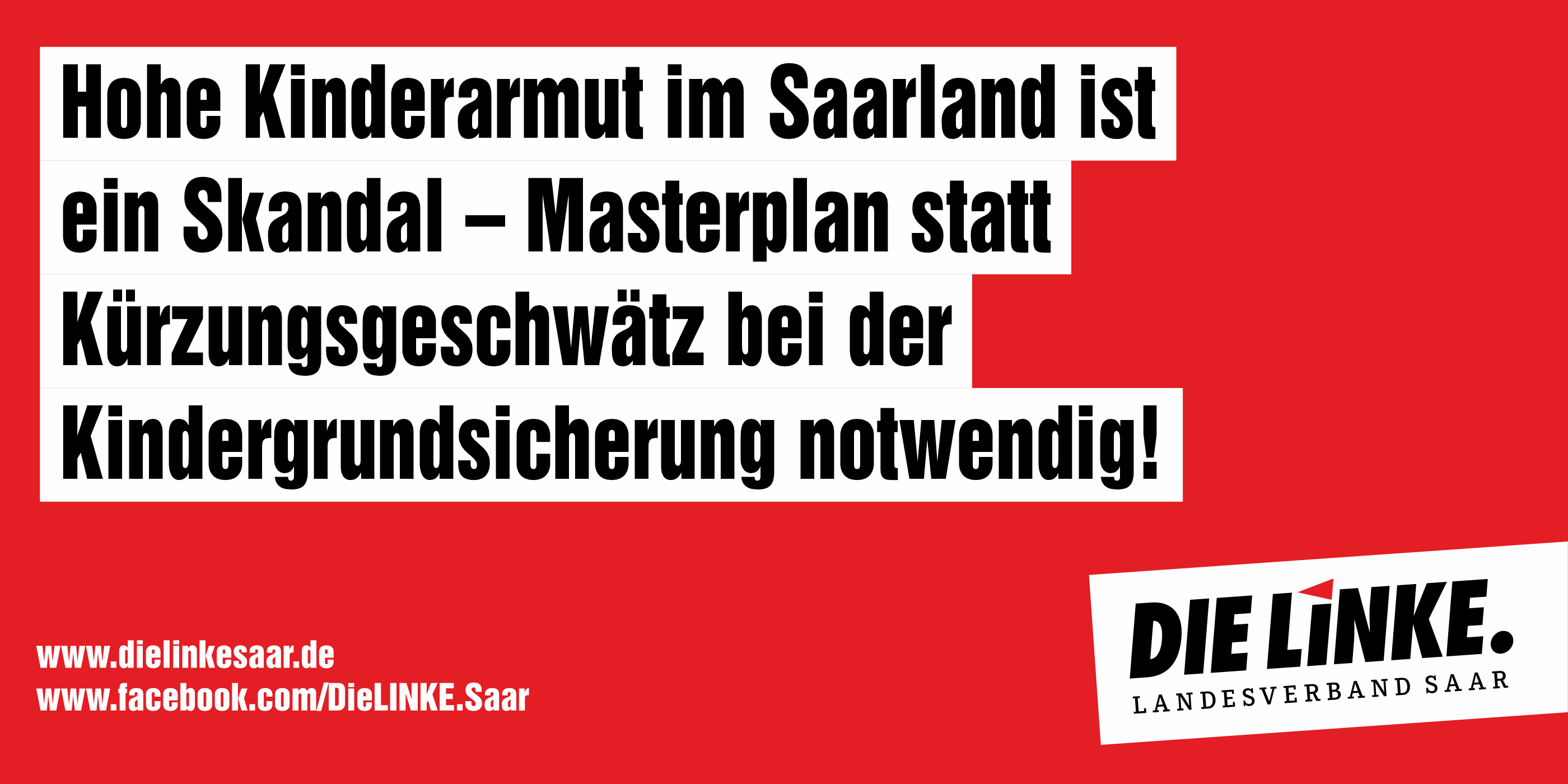 DIE LINKE Saar: hohe Kinderarmut im Saarland ist ein Skandal – Masterplan statt Kürzungsgeschwätz bei der Kindergrundsicherung notwendig!