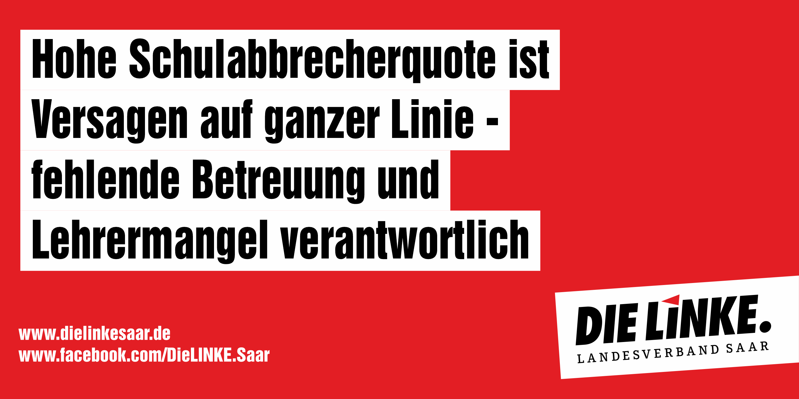 06. März 2023DIE LINKE Saar: Hohe Schulabbrecherquote ist Versagen auf ganzer Linie - fehlende Betreuung und Lehrermangel verantwortlich