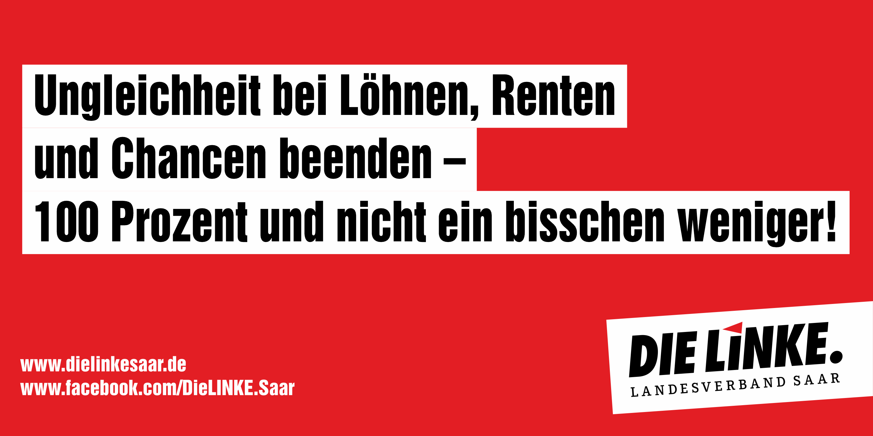07. März 2023DIE LINKE Saar: Ungleichheit bei Löhnen, Renten und Chancen beenden – 100 Prozent und nicht ein bisschen weniger!