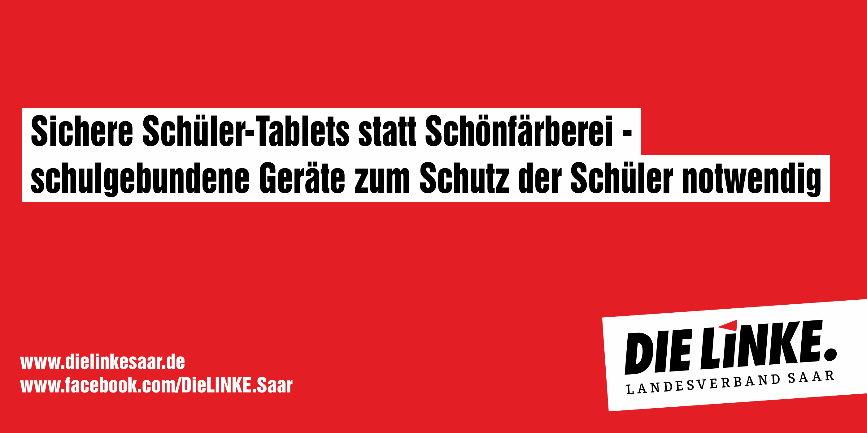 DIE LINKE Saar kritisiert den Umgang des Bildungsministeriums mit Blick auf den Jugendschutz bei der Arbeit mit Tablets in den Schulen. Die Landesvorsitzende Barbara Spaniol dazu: „Die Geräte sind derzeit offenbar nicht sicher und nicht rechtskonform. Es fehlt ein echtes pädagogisches Konzept und dafür ist das Bildungsministerium nun mal zuständig, wo extra eine neue Abteilung dafür eingerichtet wurde. Schönfärberei und die Verschiebung von Verantwortung sind hier fehl am Platz. Vielmehr sind sch... » weiterlesen