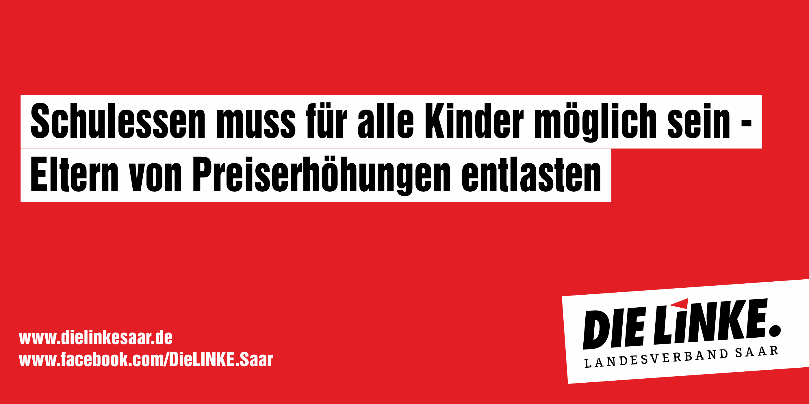 Vor dem Hintergrund, dass infolge der Energiekrise das Schulessen immer teurer wird, fordert DIE LINKE Saar Lösungen, um die Eltern von den Preiserhöhungen zu entlasten. Nach Expertenmeinung ist derzeit ein frisches Essen unter 3 Euro nicht möglich - Caterer sprechen von rund 4,50 Euro, wenn ein Bioanteil gewährleistet sein soll. Die Landesvorsitzende der LINKEN, Barbara Spaniol, dazu: „Ein gesundes und frisches Essen an unseren Schulen ist eine Notwendigkeit und muss für alle Kinder möglich sein.... » weiterlesen