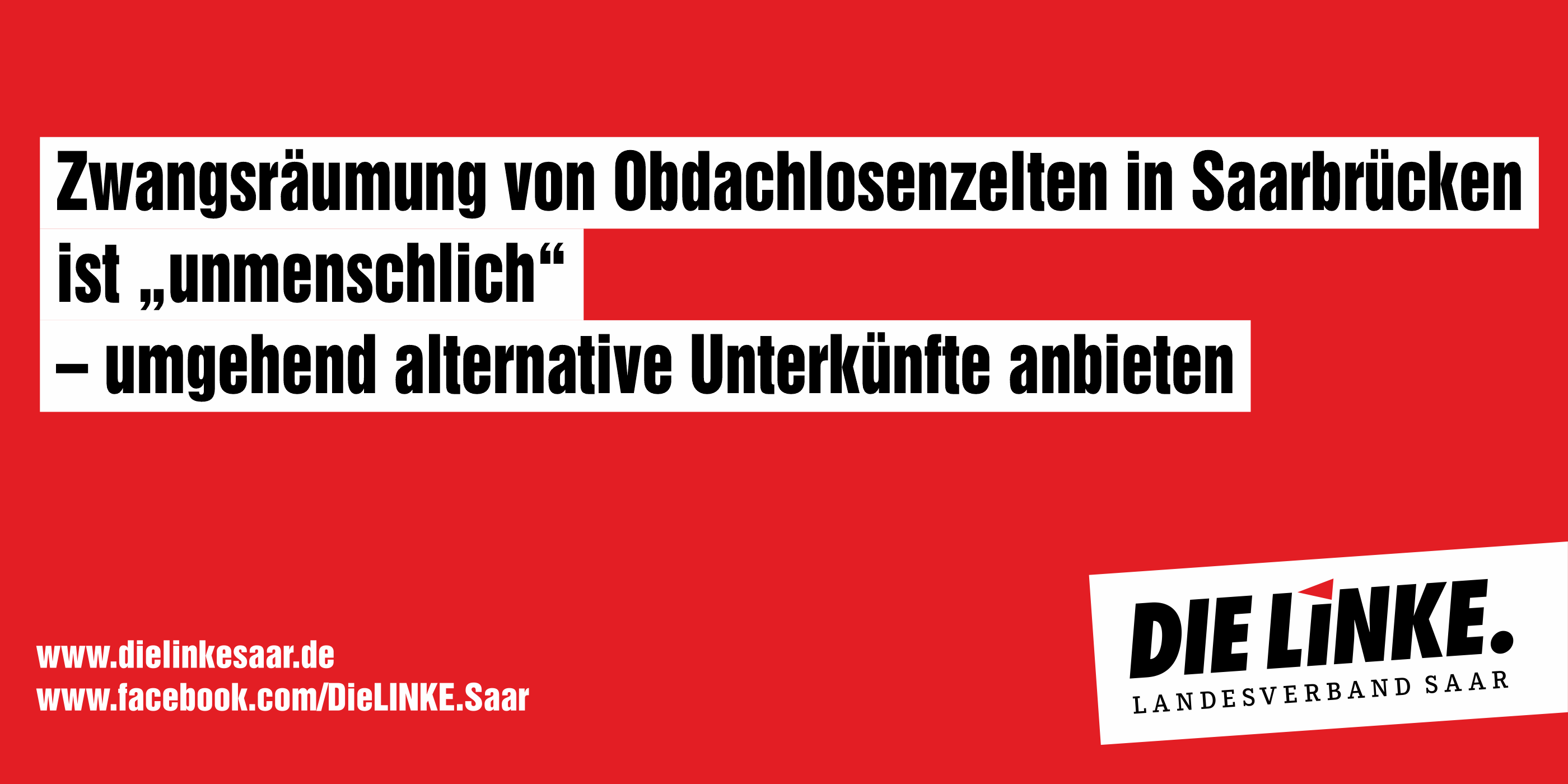 17. Januar 2023Zwangsräumung von Obdachlosenzelten in Saarbrücken ist „unmenschlich“ – umgehend alternative Unterkünfte anbieten